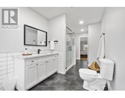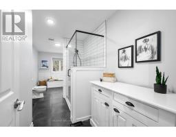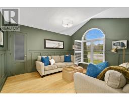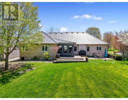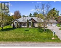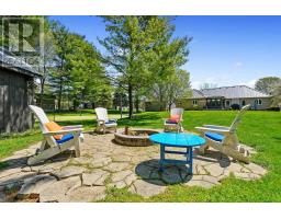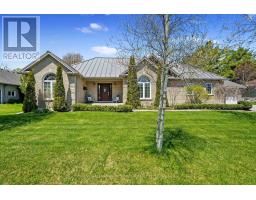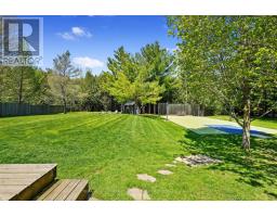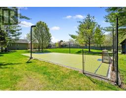 Surrounded by trees and set on a private lot, this executive bungalow delivers more than 3,000 sq ft of stylish living space designed for comfort, function, and fun. A durable metal roof, attached garage, and spacious backyard with its own pickleball court make this property both practical and impressive. Inside, the inviting front foyer opens to a bright, well-planned interior. The dining room shines with a peaked ceiling, large front window with California shutters, and chic board-and-batten wainscotting. The living room offers a sleek propane fireplace framed by windows, updated flooring, and generous space for family gatherings, all flowing seamlessly into the kitchen. The kitchen is a standout with dual-level prep counters, built-in stainless steel appliances, a ceiling-height pantry, glass tile backsplash, recessed lighting, and an undermount sink. Just beyond, the sunroom with its built-in window seat and walkout invites you to unwind with a book or soak up backyard views. The adjoining family room, complete with built-in shelving, adds an extra layer of warmth and versatility. The primary suite is a retreat of its own, offering a walk-in closet with custom cabinetry and a spa-style ensuite with a soaking tub and glass shower. Two additional bedrooms and a full bath provide flexibility, while a guest bath and main floor laundry room add convenience. The finished basement extends your living space with a large rec room, games area, and a versatile bedroom currently set up as a gym, ideal for a studio, office, or home-based business. Outdoors, the private yard backs onto woods and offers a deck, patio, fire pit with seating, and a pickleball court for year-round enjoyment. All this, just minutes from amenities and with easy 401 access, makes this property the complete package. (id:61594)