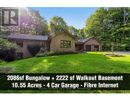 10.55 Acres * Fibre Optic Internet * 3+1 bedroom Bungalow with side walk-out finished basement with in-law suite potential, 4 car garage and long private driveway. It is conveniently located in desirable Goodwood in West Uxbridge within minutes to Hwy 407, Go Train, all amenities and the Town of Stouffville. Enjoy the inviting 3 bedroom layout offering a charming beamed living room with stone fireplace and built-in shelving, a kitchen with an abundance of cabinets and breakfast bar, a huge dining room with picture windows and walk-out to yard, 3 bedrooms, 2 baths and a large main floor laundry room. The separate side entrance, walk-out basement features a large bedroom, kitchenette, recreation room, games room, 3pc bath and an office. Car enthusiasts and hobbyists will appreciate the massive drive-through four-car garage, a rare and highly functional feature. This space offers ample room for vehicles, storage, and a workshop, with the convenience of easy access to the back of the property. An amazing highlight of this property is the expansive breathtaking outdoor space. The 10.55 acres boast a mix of dense forest and open land. The private forest trails wind through the trees, leading to a massive, four-acre cleared space at the back of the property. This open area is perfect for a hobby farm, recreational activities, or simply enjoying the open sky. Welcome to the perfect combination of tranquility and convenience! (id:61594)
