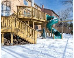 SOUGHT-AFTER RIVER OAKS! PRIVATE RAVINE SETTING! Nestled on a quiet, family-friendly street backing onto Shannon Creek Trail, this beautifully maintained five-bedroom, five-bathroom residence offers an exceptional combination of space, comfort, and privacy. Designed for modern family living, the main level features open concept living and dining areas, family room with woodburning fireplace, den/home office, and an updated family-sized kitchen complete with quartz countertops, subway tile backsplash, refinished cabinets, and a bright breakfast area with walkout to the deck. Upstairs, you'll find five spacious bedrooms, including a private suite over the garage with its own ensuite - perfect for guests, teens, or extended family. The fifth bedroom is currently open to the primary bedroom, creating an ideal nursery, dressing room, or home office, with the flexibility to easily convert back. The finished walkout basement adds valuable living space and leads to a thoughtfully designed backyard oasis complete with a large deck, built-in slide and swing set, hot tub, and a dedicated dog run - all set against the lush backdrop of the ravine. Whether entertaining, watching the kids play, or enjoying a quiet morning coffee, this outdoor space feels like your own private retreat. Notable improvements include new quartz countertops / backsplash / refinished cabinets in kitchen (2025), 270' of "Leaf Fitter" eavestrough caps (2025), chimney (2023), furnace (2020), vehicle charging station in garage (2026), and a 6500-watt Honda natural gas backup generator with dedicated panel. Ideally located close to parks, top-rated schools, River Oaks Community Centre, shopping, dining, hospital, public transit, major highways, and everyday essentials. This is a place where families grow, memories and made, and nature becomes part of everyday life. (id:61594)