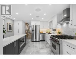 Your search ends here! Fully renovated 2.5 storey home with fully finished and underpinned basement with all the details you are looking for! Classic layout with exceptional use of space and high-end upgrades throughout. Smart home features include Ecobee thermostat, Ring cameras & doorbell, and built-in Sony sound system. Custom kitchen with large island, quartz counters, marble backsplash, and premium stainless steel appliances including a 36" Wolf range. Napoleon gas fireplace, new oak staircase with glass railings & LED stair lighting, custom crown moulding, and large windows, bathroom in floor heating on 2nd level with oversized shower and deep soaker tub. Walk out to rear yard with double door patio sliders and gas line for BBQ. Exterior features include newly paved shared driveway, steel roof, flagstone porch, composite deck with glass railings, fully fenced yard, and large garage with workshop wired for EV charging- also prime for laneway redevelopment! Prime East York location steps to TTC, GO, and close to shops, parks, and amenities. (id:61594)