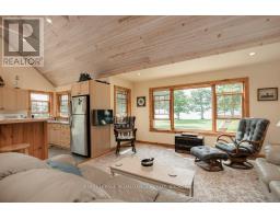 Don't miss this rare opportunity to own a spectacular custom built waterfront retreat located where Lake Ontario enters the St. Lawrence River on the south side of Simcoe Island. The 224 feet of natural clean, accessible, flat rock shoreline offers great swimming, fishing, sailing, a paradise for water enthusiasts. The 2.6 plus acres of private grounds lends ample space for gardens, outdoor activities, with a large shed for storage and a bunkie at the water's edge for guests who won't want to leave. Enjoy the sunrise and breathtaking unobstructed views of Lake Ontario through the magnificent mature oak and maple trees from the front deck of this charming 3 season home (which can easily be winterized) or sit on the back deck and watch the sun set over the rolling country side. The inside offers an open concept kitchen, dining, living room with vaulted ceilings and exposed beams, main floor laundry, two bedrooms, full bath and a loft for additional living space or office. This fully furnished, turn key piece of paradise awaits your friends and family. It's time to come find out why Simcoe Island is the best kept secret in the Thousand Islands. (id:61594)