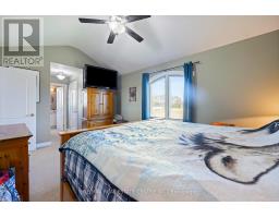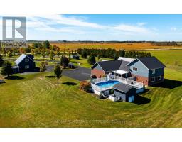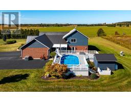 This country home is living at it's finest. Set on 5 acres with beautiful landscaping and a spring fed pond, there is a 4 bedroom main house with 3 car garage and a 2 bedroom detached coach house. This property is perfect for multi generational families or those looking to earn an income on rent. The 4 level back split house was custom designed by the current owners with large inviting rooms, over sized windows, insulated interior walls and ceilings for sound proofing, hard wired sound, hard wired internet, and more. The open concept main floor consists of a combined living room and dining room with cathedral ceilings and a pellet stove. You'll also find an eat in kitchen with a propane stove to cook on, a breakfast bar and a walk out to the partially covered deck and heated pool with slide. Upstairs is three bedrooms, including a primary with cathedral ceilings and a spa like 4 piece ensuite with jacuzzi tub. There's also a second 4 piece bathroom on this level. The above grade lower level has a 4th bedroom with a 3 piece semi ensuite bathroom, large family room with propane a fireplace and wet bar, a second walk out to the deck and pool, along with the laundry room. The partially finished basement has a 5th bedroom with above grade windows, a rec room and a cold cellar. Back outside to the converted, detached 1500 square foot, two storey coach house, where you'll find an open concept main level with radiant heated floors, large kitchen, dining and living room with propane fireplace, a walk out to your private deck, laundry and a 4 piece bathroom. Upstairs on the second floor are two bedrooms, including a 2 piece ensuite. The coach house is heated via radiant boiler heating. Three sheds on the property, including power to the shed at the pond, all buildings have metal roofs, separate septic for the coach house, separate propane tanks for the main house, coach house and heated pool. Generac generator. Pride of ownership is abundantly clear. (id:61594)