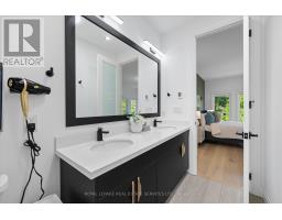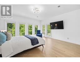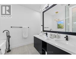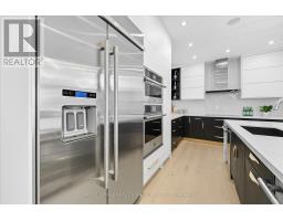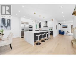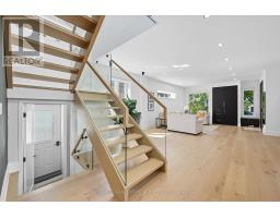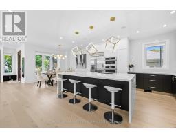 PRESTIGIOUS STREET - SOUGHT-AFTER NEIGHBOURHOOD ALONG SIXTEEN MILE CREEK! Set on a premium 160' deep lot (approx. 0.23 acres), this designer residence underwent a complete transformation in 2022, with only a portion of the foundation and exterior walls preserved. Blending superior craftsmanship with modern functionality, it offers an impressive layout designed for family living and entertaining. The main level features open concept living and dining areas, a versatile bedroom/office with a two-piece ensuite, family room with an electric fireplace and walkout to deck, convenient dog-wash station, and a powder room with heated floor. At the heart of the home, the dream kitchen showcases quartz countertops, high-end JennAir appliances, and a dramatic waterfall island with breakfast bar. An open-riser staircase with glass panels leads to the upper level, where the spacious primary bedroom offers expansive windows, a walk-in closet, and a spa-inspired four-piece ensuite with double sinks and heated floor. Two additional bedrooms, a laundry cupboard, and a luxurious five-piece main bathroom with double sinks, freestanding tub, and heated floor complete this level. The finished basement with a separate entrance extends the living space, ideal for in-laws, a nanny suite, or rental potential, featuring luxury vinyl plank flooring, two bedrooms, recreation room, four-piece bathroom, laundry, and an oversized kitchen/dining/living area. Notable features include wide-plank engineered hardwood flooring, one-foot-thick exterior walls for outstanding insulation and energy efficiency, an attached garage with EV charger, a natural stone walkway and porch with glass panels, plus a custom deck and natural stone patio perfect for entertaining. Unbeatable location - walk to Kerr Village, downtown, waterfront parks, and the lake, with easy access to highways, public transit, and GO Train. A rare offering that seamlessly combines modern luxury with an unrivalled Oakville setting! (id:61594)