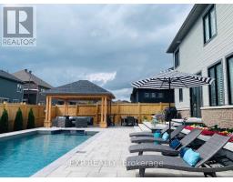 **OPEN HOUSE Feb 1st 2-4PM** Exquisite Heartwood Minto home, on a coveted 75'x100' corner lot in the prestigious Mahogany Community. This luxury residence features 5 bedrooms & 4 bathrooms, perfect for multi-generational living, with over $75,000.00 in premium builder upgrades. An interlock expanded driveway with grand stone steps welcomes you into this one-of-a-kind home, boasting 9ft ceilings on main level & basement. Rich hardwood flooring & elegant tile, grace the main & upper levels. The main floor includes a private home office, a sophisticated formal dining room, & a chef's kitchen with quartz countertops, stainless steel Kitchen Aid appliances (induction stove), Sharp drawer microwave. A spacious mudroom off the garage, ensures organization. The family room captivates with a white brick feature wall, a gas fireplace, as well as a wall of windows that fill the space with natural light. Custom California shutters adorn the windows throughout the home. The main-floor overlooks the backyard oasis, with over $200.000.00 invested in creating a vacation-like setting. Sunshine bathes the yard from morning to evening, anchored by a custom electrified gazebo with integrated lighting, gutters, & sunshades, overlooking a large, stunning inground pool with relaxing waterfall. Impeccable stonework, raised garden bed, & fully fenced perimeter, as well as the cedar lined back fence, create a private resort-style setting. Upstairs, find 4 generous bedrooms, plus a luxurious primary retreat with a spa-inspired 5-piece ensuite. A 4-piece bathroom & convenient second-floor laundry room enhances everyday living. The fully finished lower level adds versatility, with laminate flooring, a large recreation room, a 4-piece bathroom, & a 5th bedroom with walk in closet. Ample storage throughout the home showcases unmatched craftsmanship, & thoughtful design. This extraordinary home is truly a showstopper, featuring outdoor living space perfect for enjoying Ontario summers in style. (id:61594)