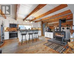 Step into timeless charm and character in this beautifully maintained century home, situated on 2 country acres, where stunning interior exposed logs create a warm and inviting atmosphere. A welcoming wrap-around porch sets the tone, perfect for relaxing and enjoying peaceful surroundings. Inside, you'll find wood flooring and a cozy woodstove that anchors the bright and spacious living room. The updated open-concept kitchen is designed for both everyday living and entertaining, featuring a breakfast bar and seamless flow into the dining area. A screened-in sunroom offers the ideal spot to enjoy your morning coffee while taking in the views. Convenience meets functionality with main floor laundry and a well-appointed layout. Upstairs, the large primary bedroom impresses with vaulted ceilings, while two additional generously sized bedrooms and a 3-piece bath complete the upper level. Outside, a detached 3-car garage provides ample space for vehicles, storage, or hobby use. This home perfectly blends historic charm with modern updates-an exceptional opportunity to own a truly special property. Recent Updates - Septic System - Tank/Bed (2010), Well drilled deeper (2007), New submersible pump (2025), New water pressure tank (2014), New hot water tank (2021), New Propane Furnace (2021), New Central Air Conditioner) (2021), New Roof (50 year shingles) (2019), New Garage Roof (2024), New Garage Doors (2023), New foam insulation in basement (2023 ). 24 hours irrevocable on all offers. (id:61594)