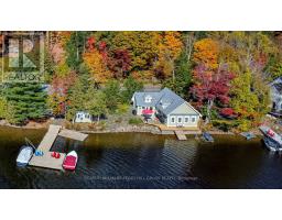 LUXURIOUS LAKEFRONT RETREAT WITH 200 FT OF SHORELINE, PRIME SW EXPOSURE, BUNKIE & HEATED/INSULATED GUEST COTTAGE! Set along the shores of Lake of Bays, where water levels are thoughtfully managed by the township to help preserve shoreline integrity and enjoyment, this luxurious waterfront retreat offers 200 ft of crystal-clear shoreline, prime SW exposure, a bunkie and a heated/insulated guest cottage. Set on 0.86 acres, this property offers a flat lot, hard-packed sandy waterfront, no stairs to the shoreline, and the advantage of both walk-in entry and deeper water off the dock. Set on a year-round municipal road near Dorset, Huntsville, Gravenhurst, Bracebridge, and Baysville, enjoy miles of boating with access to restaurants, grocery stores, the LCBO, Robinson's Hardware, ice cream, Lake of Bays Brewery, and Bigwin Island. Substantially rebuilt in 2007, the main residence features cathedral ceilings, oak hardwood floors, large windows, and a kitchen showcasing wood cabinetry, granite counters, and a large island with seating. The primary bedroom offers separate deck access and a full wall of windows overlooking the water. Landscaped grounds present perennial gardens, granite stone steps, a crushed granite driveway with ample parking, and a cleared area for games or future landscaping. Outdoor living continues with updated two-tier decks and an oversized 500 sq ft L-shaped floating dock. The heated/insulated guest cottage has a living room, 2 bedrooms, and a bathroom, plus a bunkie. Modern systems include a propane high-efficiency furnace, on-demand hot water systems, a UV & filtered lake water system, heated water lines, an over-capacity septic system, foamed-in-place insulation, a BBQ gas hookup, and updated drainage. An additional cleared lot across the road offers potential for a garage, future outbuilding, or extra parking. A distinctive Lake of Bays offering where exceptional shoreline, thoughtful design, and guest space come together in all the right ways! (id:61594)