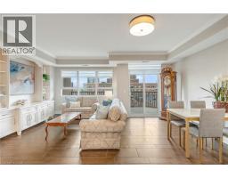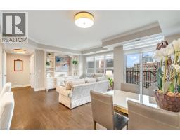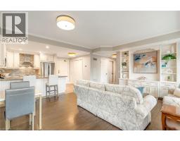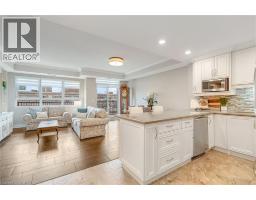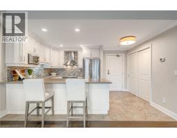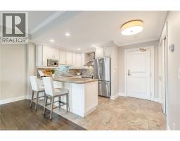 Location, location. Welcome to The Baxter, one of downtown Burlington’s most desirable condo residences, where everything you need is right at your doorstep; restaurants, boutique shopping, grocery stores, the lakefront, Spencer Smith Park, and scenic walking and biking trails. This spacious and beautifully updated one-bed, one-bath suite offers approximately 871 sq ft. of thoughtfully designed living space. The unit has been tastefully renovated with a custom kitchen featuring soft-close cabinetry, Caesarstone countertops, pot drawers, and custom millwork, complemented by new flooring and updated lighting throughout. A large north-facing balcony extends your living space outdoors and overlooks The Village Square. Additional highlights include ensuite laundry, an oversized storage locker conveniently located just across the hall, and secure underground parking. Residents enjoy recently renovated common areas, concierge service, and exceptional value with all-inclusive maintenance fees covering heat, hydro, water, parking, locker, and as of June 1, 2026 will also include high-speed internet and cable with streaming services. An ideal opportunity to enjoy a low-maintenance lifestyle in Burlington’s vibrant and ever-growing downtown core. (id:61594)