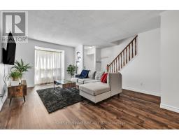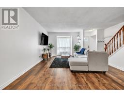 Welcome to this beautifully updated and spacious townhouse, offering 3 generously sized bedrooms and 2 modern bathrooms. Featuring brand new laminate flooring and a newly upgraded staircase, And freshly painted to create spa-like atmosphere throughout. The main level boasts a large, contemporary living room with a bright large window, and a spacious kitchen - perfect for cooking and entertaining. Step outside to a private backyard ideal for summer BBQs and gatherings with friends and family. Upstairs, you'll find three bright bedrooms with large closets and windows, complemented by a sleek, updated family bathroom. The finished basement offers a versatile space that can be used as a recreation room, playroom, home office, or gym tailored to suit your lifestyle. You'll also find a large storage area adjacent to the laundry room. Enjoy the convenience of private parking right outside your front door, along with easy access to all amenities, schools, parks, Toyota Motors and public transportation. Move-in ready and perfectly located, this home is a must-see! (id:61594)