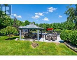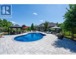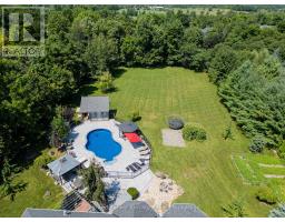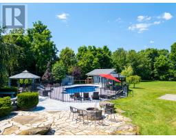 Welcome to 4 Abbitt Crescent, a custom-built home offering unparalleled luxury & privacy on over 2 acres of beautifully treed land. With 5 spacious bedrooms & 3 modern, upgraded bathrooms, this residence combines elegance & comfort at every turn. Upon entering, you're greeted by an expansive open-concept layout with soaring high ceilings & large windows that fill the home with natural light. The upgraded chefs kitchen features stainless steel appliances, sleek Caesarstone countertops, and an oversized island, seamlessly connecting to the living and dining areas perfect for both everyday living & entertaining. Radiant floor heating runs throughout, and the home is carpet-free (excluding staircases). The bright loft, featuring large skylights, currently serves as a bedroom but offers flexible potential as a home office, entertainment space, or additional lounge area. The modern bathrooms showcase contemporary fixtures, with the primary ensuite offering a spa-like retreat complete with a soaking tub & glass shower. Downstairs, the open layout of the recreation room includes an impressive in-home gym, sauna, tanning booth, offering a full wellness experience while still providing ample space. The fully finished basement also features one of the bedrooms and an office with built-in cabinetry, which can easily be converted into a sixth bedroom ideal for guests or extended family. A 2.5-car garage and a newly paved circular driveway accommodate over 20 vehicles, adding both functionality and convenience. Recent updates include a new roof & windows (completed in the last few years), extensive professional landscaping throughout. The backyard features a private oasis with an inground saltwater pool & large pool house, surrounded by mature trees & lush shrubbery. The pool area has been enhanced with brand-new interlocking & updated equipment, including a new pump! As a bonus, ownership includes a certificate for 1/20th of the 43 shared acres held by residents of Abbitt Cres. (id:61594)