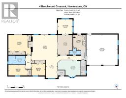 Welcome to 4 Beechwood, Oro-Medonte This sprawling bungalow offers over 2,550 sq. ft. of living space on more than an acre, tucked away on a quiet cul-de-sac in a highly sought-after location. The main level features 3 bedrooms, 2 bathrooms, a sun-filled living room with vaulted ceilings, a dine-in kitchen, separate dining area, and a bright sunroom. The main-floor laundry/mudroom connects directly to the attached double garage for added convenience. The professionally finished basement adds an abundance of flexible living space, including an additional 3-piece bathroom. Step outside to a private, tree-lined yard surrounded by mature hardwood perfect for outdoor dining, evening fires, or relaxing in the hot tub. There's even a wooded play area for kids to explore. Given the location, total living space and property, this is a rare find at the price point! (id:61594)