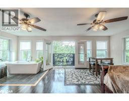 YOUR FOUR-SEASON TICKET TO LAKE LIFE WITH 140 FT OF SHORELINE ON 1.61 ACRES! Imagine mornings with coffee on your balcony as loons call across the water, afternoons spent reeling in smallmouth bass or cruising the lake by pontoon, and evenings gathered around the fire pit beneath a canopy of stars. This incredible year-round home or cottage on Crego Lake offers 140 ft of private sandy shoreline, a lush forest backdrop, and access to 600 acres of nearby wilderness trails for hiking and cross-country skiing. Set on a 1.61-acre lot along a privately maintained road, this four-season retreat is surrounded by moose, deer, and total peace, yet just 10 minutes from daily essentials in Kinmount and under 25 minutes to shopping and a hospital in Minden. Over 3,500 finished sq ft are filled with natural light, five skylights, expansive windows, two wood stoves, pot lights, and a bright open layout. The functional kitchen features dark-toned cabinetry with some glass fronts, stainless steel appliances, subway tile backsplash, and a breakfast bar ledge, while the lakeview living and dining area offers two walkouts to a balcony. A three-season sunroom with wraparound windows adds a quiet spot to soak in the views. With seven bedrooms in total, including a spacious primary suite with a walk-in closet, private balcony, and 3-piece ensuite, plus a main floor bedroom with a 4-piece ensuite and another second-floor suite with its own ensuite and walk-in closet, there's room for everyone! The partially finished walkout basement includes a rec room with a bar area, wood stove, ample games space, and two sets of double garden doors. Two laundry areas are conveniently located on the main and second levels. A 10x16 workshop, 6x8 shed, oversized two-car garage, and parking for 8+ vehicles add functionality to the fun. Whether it's your weekend escape or your forever #HomeToStay, this is where cannonballs, campfires, and cozy nights set the stage for a lifetime of memories made by the lake! (id:61594)