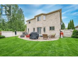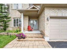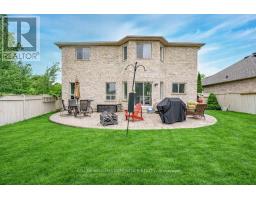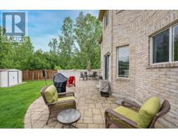 Discover this exceptionally well-maintained, all-brick family home at 4 Gold Park Gate in Angus. Boasting over 2800 sq. ft. of fully finished living space on great lot. This spacious and bright home features a double-door entry, 9-ft ceilings, and a formal living and dining room with hardwood floors and pot lighting. The beautifully renovated eat-in kitchen (2022) showcases quartz counters, a stylish backsplash, new appliances, pot lighting, a breakfast bar, and a walkout to a stone patio and fenced yard with a garden shed. The cozy family room offers a gas fireplace and hardwood flooring. A main floor laundry with garage access and a powder room add convenience. Upstairs, the refinished primary suite includes a walk-in closet, an ensuite with a new vanity and shower, and a relaxing corner jet tub. Three additional generously sized bedrooms complete the second floor. The finished basement features a large rec room, a 2-pc bath, and ample storage. Upgrades include new garage doors (2021), central air (2024), and a water softener. (id:61594)