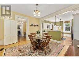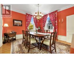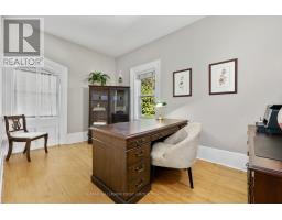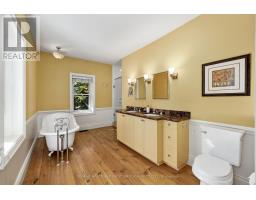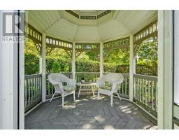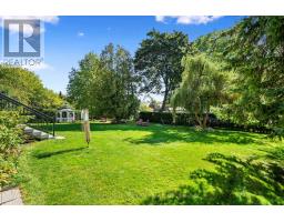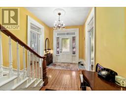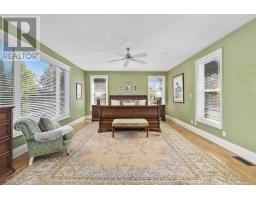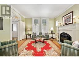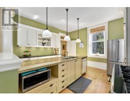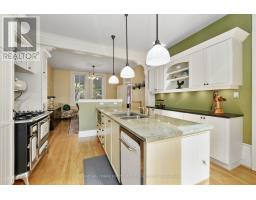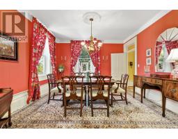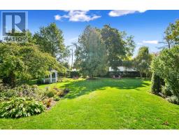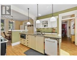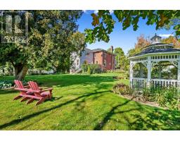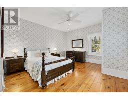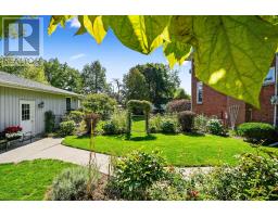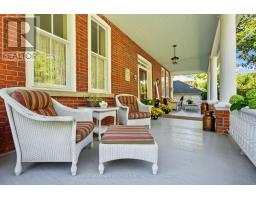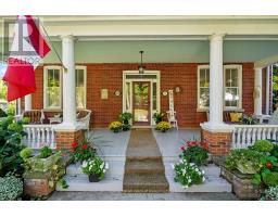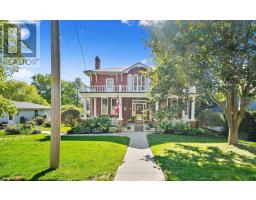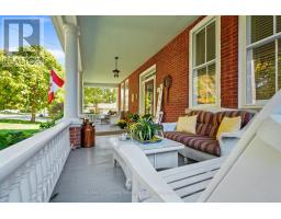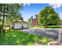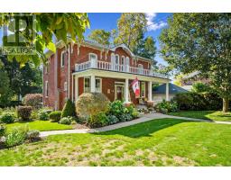 This character-filled two-storey red brick century home, circa 1860s, blends historic charm with generous living space and modern convenience. A covered front veranda, surrounded by meticulously maintained perennial gardens, sets the tone for the timeless elegance found throughout. Inside, the main floor showcases period details including extra-wide baseboards, detailed crown mouldings, and decorative ceiling coins. The sunlit front living room with fireplace flows seamlessly into the spacious formal dining room. A thoughtfully designed kitchen features a central island with pendant lighting and a vintage-inspired cooktop and oven, opening into an informal dining area. A bright family room with a walkout and bar area provides the perfect space for entertaining, complemented by a guest bathroom on this level. The upper floor is anchored by the primary suite, which features an en-suite bathroom and a walkout to a private balcony. Three additional bedrooms, a full bathroom with a separate tub and shower, plus a double vanity, and a cozy den or reading nook complete the layout. The lower level offers ample storage and a separate walkout to the backyard. Outdoors, discover a private retreat featuring a fully fenced yard, tranquil pond, screened wood gazebo, and spacious deck, perfect for alfresco dining. A detached four-car garage provides exceptional parking and storage. Located near schools, amenities, and offering easy access to Highway 2 and the 401, this historic gem is the perfect blend of character, comfort, and convenience. (id:61594)