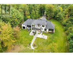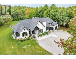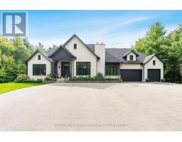 Top 5 Reasons You Will Love This Home: 1) Professionally designed and newly built in 2022, this custom bungaloft combines timeless craftsmanship with modern elegance, offering a residence that feels both brand-new and thoughtfully curated 2) Showcasing architectural grandeur, the home boasts 10' ceilings throughout and a dramatic 12' ceiling in the dining room, enhanced by custom shiplap, coffered detailing, and expansive windows with custom window treatments throughout framing the beauty of the estate 3) A true culinary masterpiece, the chef-inspired kitchen features quartz countertops, custom cabinetry, a walk-in pantry, and a striking white oak island that anchors the space with style and sophistication 4) Explore the primary retreat beyond compare, flaunting its own fireplace, a private terrace with views of the grounds, a spa-like ensuite with a steam shower, and two remarkable walk-in closets, one of which could easily be converted back into a bedroom or nursery 5) Established in an exclusive setting, this professionally landscaped 4-acre estate delivers complete privacy and prestige, all while being just minutes from golf, skiing, pristine beaches, and convenient access to the GTA. 3,679 above grade sq.ft. plus a finished basement. (id:61594)
