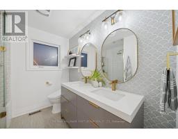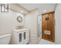 Welcome to an exquisitely renovated, designer-curated home in a coveted South Ajax location close to the lake, backing onto protected greenspace with a peaceful river flowing into Lake Ontario. Private, serene, and surrounded by nature, this exceptional residence offers refined finishes and effortless functionality.Completely renovated in 2022, the home features rich hardwood flooring, elegant crown moulding on the main floor, pot lights, and three skylights that fill the space with natural light. At the heart of the home is a stunning chef's kitchen with quartz countertops and a striking waterfall-edge island, built-in double ovens, premium appliances. Kitchen appliances were updated in 2022.The main floor includes a private office with custom built-ins and sliding barn doors, ideal for working from home, along with a convenient laundry room offering garage access, a side entrance, and additional built-in storage. The finished basement adds valuable living space and includes a spa-inspired 3-piece bath and private sauna. Smart home features are integrated throughout, including smart toilets and smart system setups designed for modern comfort. Additional upgrades include a 200-amp electrical panel, Tesla charger in the garage, and washer and dryer replaced in 2025.Offering exceptional privacy, a breathtaking natural backdrop, and a luxurious renovation, this is a rare opportunity to own a truly distinguished home in one of South Ajax's most desirable settings. (id:61594)