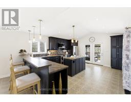Majestic quality custom-built raised bungalow (2006) offering over 2,500 sqft of finished living space in a prime lake-view setting! Thoughtfully designed with spacious principal rooms, this property features 3+2 Beds, 2 kitchens, 2 laundry, 4 full bathrooms and bonus studio loft offering exceptional versatility including that for home-based professionals. The main level showcases expansive open concept living, drenched in picturesque lake views, with dramatic cathedral and vaulted ceilings, maple hardwood flooring and 2 full bathrooms, including a primary ensuite with walk in closet, along with 2 additional generously sized bedrooms. The bright lower level offers 9-ft ceilings, a large family/recreation room, a rough in for future wet bar/additional kitchen, 2 bedrooms, a full bath, laundry and a walk-out to the attached garage - creating a seamless extension of living space ideal for recreation, guests, or office use. Set on a premium lot and offering elevated panoramic views of the lake while backing onto a golf course, this property delivers both privacy and lifestyle. A standout feature is the detached 20'x40' insulated garage/workshop with upgraded electrical service, impressive 14+ft ceiling height, 10'x12' overhead door and storage - Ideal for hobbyists, contractors or outdoor enthusiasts. Adding further value to this exceptional space, is a studio loft with 4pc bath, kitchenette and second laundry - offering a highly versatile space with endless potential suited to a range of lifestyle needs. Additional highlights include parking for 12+ vehicles across two driveways, metal roof, multi level rear deck with 2 gas outlets, hot tub, gazebo in a fully fenced yard. Topping it all off - you are just mere steps from the lake access and 400m away from the local boat launch and park! This is a rare opportunity to live, work, and play in one desirable property. (id:61594)