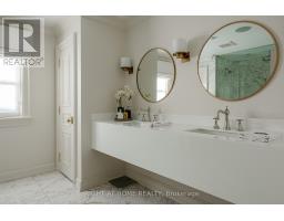 Your Dream Home Awaits! Welcome to 40 Oatlands - a masterpiece of modern elegance and timeless craftsmanship, where every detail has been meticulously curated for unparalleled luxury. From the moment you enter, you'll be captivated by soaring 10ft ceilings, accentuated by 8ft doorways. Every room is adorned with custom solid doors, complemented by 10" poplar baseboards and 10" plaster crown moulding on the main floor. A comprehensive smart home system seamlessly integrates security, lighting, built in speakers throughout, temperature control, and the fireplace allowing you to customize your environment at the touch of a button. Home comfort also extends to each washroom and laundry room through heated floors, inviting you to extend your stay in comfort. Designed for those who love to cook and entertain, this stunning kitchen is equipped with Tudor-framed glass cabinets, adding a touch of European charm. A custom stainless steel hood fan is both functional and stylish, while the 48" Wolf Range and 42" Subzero B/I integrated fridge/freezer bring commercial-grade performance to your fingertips. An adjoining servery and butler pantry offers additional prep space and storage while maintaining an air of sophistication. The master bedroom is a retreat like no other, featuring a Napoleon fireplace and spa-like ensuite. In the master ensuite where relaxation reigns supreme, indulgence awaits with Calcutta marble and exquisite Perrin and Rowe fixtures. A home gym provides a focused space for fitness and performance. Beyond the walls of this home lies an outdoor paradise. A stunning saltwater pool and cabana equipped with a shower invites luxury living outdoors. As you unwind in this serene setting, enjoy the ambiance of the outdoor gas fireplace, enhanced by high-quality outdoor speakers. For ultimate privacy and security, several outdoor security cameras and custom motorized top-of-the-line gates complete the property, adding a layer of exclusivity and peace of mind. (id:61594)