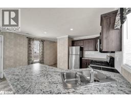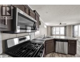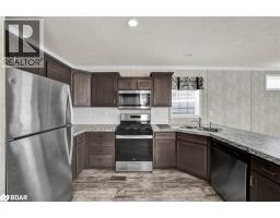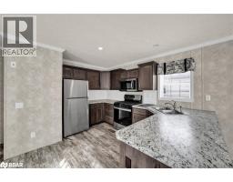 This brand-new mobile home is situated in a quiet, well-maintained park, offering a peaceful and convenient lifestyle. Built on a solid concrete pad with hurricane straps, this home is designed for durability and comfort. Step inside to discover a spacious, open-concept layout featuring a modern eat-in kitchen with sleek stainless steel appliances and stylish laminate flooring throughout - completely carpet-free! The home offers two generously sized bedrooms, a full bathroom with ample storage, and a walkout to 2 brand-new decks - front and back, overlooking a fully fenced yard on a generous lot. A new garden shed provides additional storage space, while the double driveway adds extra convenience. All appliances are brand new, including a gas dryer. Located just minutes from all amenities, with quick access to Angus, Base Borden, and Alliston, this home is perfect for those seeking comfort, style, and easy living. Fees $511.52/Month include taxes, water, and road maintenence. Don't miss this fantastic opportunity - schedule your viewing today! (id:61594)
