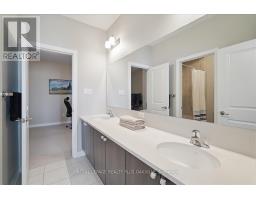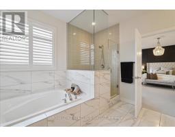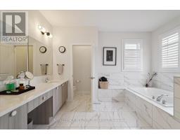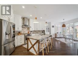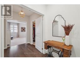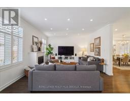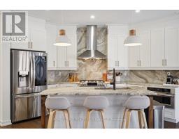 Distinguished 2-storey brick residence blends timeless sophistication with modern family living. Soaring ceilings, a statement light fixture, and a custom oak staircase set the tone for the homes grandeur, highlighting the meticulous attention to detail throughout. At the heart of the home lies the chef-inspired kitchen, tailored with high-end finishes, premium appliances, and a refined design that balances style with function. Imported quartzite stone countertops and backsplash elevate the space, while the open-concept layout seamlessly connects the kitchen to the dining and family areas, perfect for both everyday living and entertaining.Rich oak flooring enhances the main level and staircase, complemented by designer accent walls in the primary bedroom, powder room, and stairway. Oversized interior doors on the main floor, including the entry, closets, and powder room, further enhance the homes grand presence.The primary suite is a private retreat, featuring double-door entry, his-and-her custom closets, and a spa-inspired ensuite complete with double sinks, a frameless glass shower, and a deep soaker tub. Additional bedrooms are generous in size and share access to a full bathroom. The upper level offers cozy broadloom underfoot and a charming reading nook for quiet moments.Professionally landscaped front and backyards complete the homes appeal, with a stone patio, custom horizontal fencing, wood planters, and a bespoke shed creating a stylish outdoor living space. Added conveniences include inside access to the double garage, a main floor laundry room, and over 1,000 sq. ft. of lower-level potential.Curated by an owner with a discerning eye for design, this home is sophisticated, modern, and perfectly tailored for family living. Enjoy easy access to the toll-free portion of Hwy 407, Hwy 401, and Hwy 412, as well as nearby parks, trails, and shopping. Located within the catchment zone of Durhams top-rated schools. (id:61594)