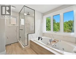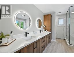Welcome home to this Beautifully Updated 3200 sqft 5 bed, 5 Bath home in excellent location of Ancaster Meadowlands, close to all amenities, Top rated schools, parks and easy highway access! Set on a pool sized 62ft x 142ft lot, this stunning home, this home has been updated throughout. Enter to welcoming main floor with Grand foyer, new flooring throughout, spacious principal rooms including living room, dinning room, Large Eat-in kitchen, main floor family room with wood burning fireplace, 2-piece bath, garage access & main floor laundry. The generous sized eat-in kitchen offers solid oak cabinets, stainless steel appliances, leathered stone countertops, pantry and desk space, also with patio doors leading out to the large, private yard! Upper floor boasts 4 very large bedrooms including 2 PRIMARY SUITES both with ensuite baths, walk in closets & great for office space! 3rd large bedroom also offers double closet & Ensuite Privileges to 5pce bath. Finished basement with office, Rec room with large Egress windows for loads of natural light, 5th bedroom (or gym) & updated 3-piece bath, plus plenty of extra storage. Could easily be set up as Nanny/in-law suite! Updates include flooring (2023), all 5 bathrooms renovated (2022/23), lighting, washer, dryer, paint, trim, and the list goes on! Ideally located walking distance to all amenities, public transit and TOP rated schools! You won't want to miss this one! (id:61594)