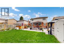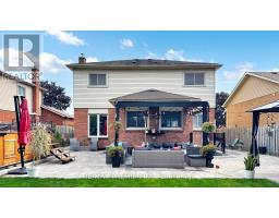 Impeccably renovated 4-bedroom home on a large pool-sized lot, offering a spacious combined living/dining room, a bright greenhouse kitchen with granite counters, backsplash, stainless steel appliances, and walk-out to a covered patio. The inviting family room features a cozy fireplace and modern pot lights, while the upper level boasts 4 generous bedrooms including a primary retreat with walk-in closet and ensuite bath. Renovated throughout with elegant crown moulding, hardwood staircase, newer garage doors, 200 AMP service, roof (2016), furnace (2014), and HWT (rental). Major upgrades include a Reliance Smart Air conditioning system (2021), exterior painting (2024), full interior paint (2025), interlocking patio (2022), and pot lights around the home (2023). The finished basement with separate entry showcases a stunning Italian kitchen with marble counters, washer/dryer connections with modern cabinetry, high ceilings with extra insulation, pot lights, waterproof vinyl flooring (2023), an additional bedroom/gym, den/office, rec room, 3-piece bath, and a newly purchased refrigerator (2025). A true move-in ready residence combining timeless elegance, thoughtful upgrades, and endless possibilities. perfect Basement for in-law family or potential income. (id:61594)