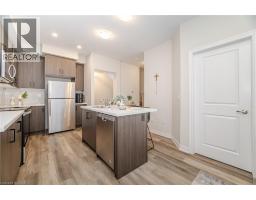 Gorgeous contemporary interior-unit townhome by DiCenzo Homes epitomizes modern living, offering 3 bedrooms and 2.5 bathrooms with a perfect blend of style and functionality. The heart of the home features a chic kitchen with extended-height cabinetry, quartz countertops, a breakfast bar island, and brand-new appliances – designed for both everyday living and entertaining. The open concept living room, complete with a cozy fireplace, provides a warm and welcoming space to relax and gather. A main-floor bedroom offers flexibility for guests or a home office, while the upper level showcases two additional bedrooms, including a primary retreat with his-and-hers closets and a private 3-piece ensuite.Quality upgrades include quartz counters throughout, an oak staircase, vinyl plank flooring on the ground and main levels, and a central vacuum system with attachments. The property also includes a 1-car garage and a private driveway. Enjoy breathtaking views of the Niagara Escarpment from the comfort of your home, with the convenience of nearby highways, schools, parks, waterfront, trails, and shopping amenities. (id:61594)