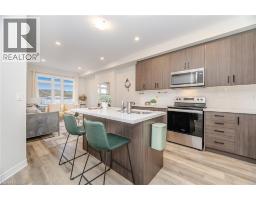 Modern living at its finest! This stylish 3-bedroom, 2.5-bath townhome by DiCenzo Homes offers a functional layout with designer finishes throughout. The bright, open-concept main floor features quartz countertops, upgraded kitchen cabinetry, vinyl plank flooring, and a cozy fireplace—perfect for everyday living and entertaining. A main-floor bedroom provides excellent flexibility for guests, a home office, or multi-generational living. The spacious primary bedroom boasts his and hers closets and a private 3-piece ensuite. Additional highlights include a central vacuum system, convenient parking with a 1-car garage plus driveway space, and a truly move-in-ready condition. Enjoy breathtaking views of the Niagara Escarpment, along with easy access to highways, schools, parks, waterfront, trails, and shopping amenities. Ideal for families, professionals, or investors alike! ** rental items HWT & HRV ** (id:61594)