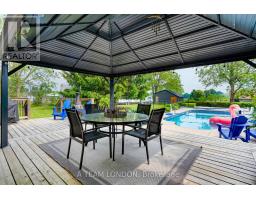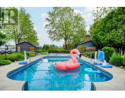 Welcome to this spacious 4-bedroom, 4-bathroom home set on a 1.15-acre lot in a peaceful country setting just minutes from the heart of Strathroy and steps from Strathroy District Collegiate Institute and Holy Cross Secondary School. This well-maintained property offers plenty of room for family living, inside and out. The main floor features a functional layout with bright living spaces, while the finished basement adds additional living area perfect for a rec room, home office, or gym. Outside, enjoy the in-ground pool, ideal for summer entertaining, along with a large yard surrounded by mature trees for added privacy. The attached 2-car garage provides convenient parking and storage, and there are two outbuildings for additional space or hobbies. A great opportunity to enjoy country living with the benefits of town amenities close by. (id:61594)