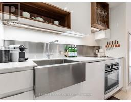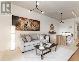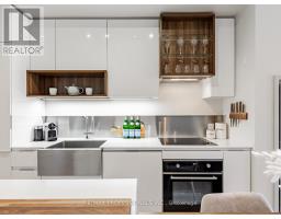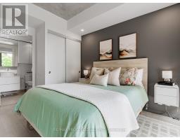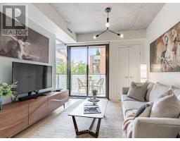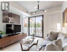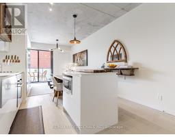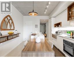 Live in one of Toronto's most sought-after neighbourhoods, in a boutique building designed by renowned neo-modern architect Peter Clewes. This intimate and stylish residence offers the perfect balance of design and function. This thoughtfully planned 1+den suite with two full baths features a versatile den that can easily serve as a second bedroom or home office. Soaring nine-foot exposed concrete ceilings, floor-to-ceiling black-framed windows that flood the unit in sunlight, and bleached oak floors fill the space with natural light and give it a modern edge. The sleek kitchen is equipped with built-in appliances, quartz counters, a stainless steel backsplash, oversized sink, and crisp white cabinetry. A custom island with quartz counters extends into a walnut dining table, creating a seamless space for both cooking and entertaining. The primary bedroom offers pot lighting, floor-to-ceiling windows, double closets, and a spa-like three-piece ensuite with a frameless glass walk-in shower. A private covered balcony, integrated front closet, ensuite storage, and in-suite laundry complete the home, along with one underground parking space. Residents enjoy exceptional building amenities including a gym, party room, concierge, BBQ area, bike storage, and visitor parking. Situated in the heart of Roncesvalles, one of Toronto's most vibrant communities, this home is surrounded by cafes, restaurants, markets, shops, and parks including an off-leash dog park! With quick TTC access by streetcar or subway, downtown is only minutes away. Stylish, functional, and ideally located, this condo offers the best of both home and neighbourhood. (id:61594)