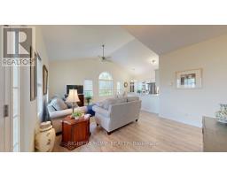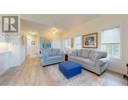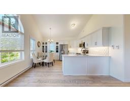 Welcome to this beautifully appointed 2-bedroom, 2-bathroom bungalow-style garden condo nestled in the charming and historic town of Cobourg. Whether you're a first-time homebuyer, downsizer, or savvy investor, this thoughtfully designed home offers the perfect blend of comfort, convenience, and style. Step inside and be welcomed by soaring cathedral ceilings and an abundance of natural light streaming through large windows, creating an open, airy feel throughout the approximately 1,000 sq/ft layout. The open-concept design seamlessly connects the upgraded kitchen, dining, and living areas ideal for both daily living and entertaining. The kitchen is a true standout, featuring custom cabinetry, quartz countertops, custom backsplash and modern finishes that will appeal to any home chef. Both bedrooms are generously sized with ample closet space, while the primary suite offers a peaceful retreat bathed in natural light. The second bedroom adds flexibility perfect for guests, a home office, or creative space. A full 4-piece bath and an additional 2-piece bath ensure comfort and convenience for residents and visitors alike. Practicality meets lifestyle with a spacious utility room offering in-suite laundry and extra storage. Step outside to enjoy your private front porch, an ideal spot to unwind with morning coffee or relax during warm summer evenings. Additional highlights include newer blinds, dedicated parking space,, and a location thats just minutes to Cobourgs vibrant downtown, waterfront, shops, restaurants, and with easy access to the 401.If you're seeking low-maintenance living with a touch of elegance in a desirable community, this exceptional condo is not to be missed (id:61594)