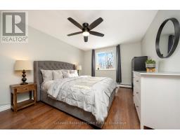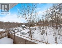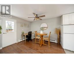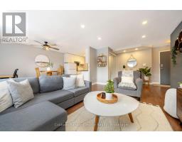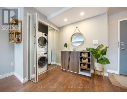 Cute as a button and completely move-in ready, this 1 bedroom, 1 bathroom condo is ideally located in one of the best spots in town, just steps to downtown Georgetown, shops, and the local Farmers' Market. The bright and functional layout begins with a welcoming front foyer featuring ceramic tile flooring, a flush mount light, and a double mirrored closet offering ample storage. The living room showcases laminate flooring, recessed pot lights, a sunny south facing window, and a walk out to the balcony with open south facing views. The open concept dining area continues the laminate flooring, features a ceiling fan with integrated light, and shares access to the balcony, creating a seamless indoor outdoor living experience. The kitchen offers ceramic flooring, a mosaic tile backsplash, laminate countertops, a double stainless-steel sink, track lighting, and an open concept design ideal for everyday living. The spacious primary bedroom includes laminate flooring and a south facing window that fills the room with natural light. The renovated four-piece bathroom features a modern vanity with sink, updated vanity lighting, and a tub and shower combination with sliding glass doors. Ensuite laundry adds everyday convenience with a Bosch front load washer and dryer included. Additional highlights include one exclusive parking space, visitor parking, bike storage and a private storage locker located in the building. Maintenance fees are all inclusive, covering hydro, heat, and water. Ideally located close to schools, parks, and minutes to GO, this is the perfect opportunity for first time home buyers. (id:61594)