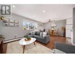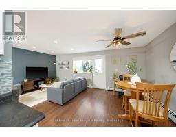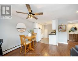 Cute as a button and completely move-in ready, this 1 bedroom, 1 bathroom condo is ideally located in one of the best spots in town, just steps to downtown Georgetown, shops, and the local Farmers' Market. The bright and functional layout begins with a welcoming front foyer featuring ceramic tile flooring, a flush mount light, and a double mirrored closet offering ample storage. The living room showcases laminate flooring, recessed pot lights, a sunny south facing window, and a walk out to the balcony with open south facing views. The open concept dining area continues the laminate flooring, features a ceiling fan with integrated light, and shares access to the balcony, creating a seamless indoor outdoor living experience. The kitchen offers ceramic flooring, a mosaic tile backsplash, laminate countertops, a double stainless-steel sink, track lighting, and an open concept design ideal for everyday living. The spacious primary bedroom includes laminate flooring and a south facing window that fills the room with natural light. The renovated four-piece bathroom features a modern vanity with sink, updated vanity lighting, and a tub and shower combination with sliding glass doors. Ensuite laundry adds everyday convenience with a Bosch front load washer and dryer included. Additional highlights include one exclusive parking space, visitor parking, bike storage and a private storage locker located in the building. Maintenance fees are all inclusive, covering hydro, heat, and water. Ideally located close to schools, parks, and minutes to GO, this is the perfect opportunity for first time home buyers. (id:61594)