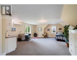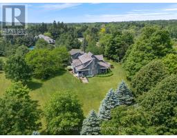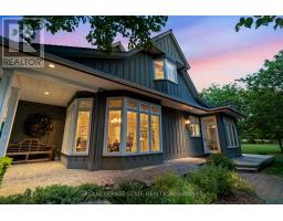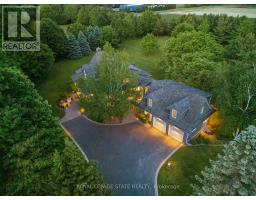 Welcome to your private country retreat on nearly 4 acres in the heart of Carlisle. From the moment you arrive, this property leaves a lasting impression with its winding driveway, lush natural surroundings, and timeless centre-hall design. Nestled on a quiet hill and surrounded by mature trees, this custom-built home offers an exceptional blend of craftsmanship, quality, and classic charm. The inviting front and covered side porches provide peaceful spaces to relax and take in the views. Inside, the home showcases maple hardwood flooring and a bright, open-concept layout designed for modern living. The kitchen is equipped with high-end stainless steel appliances, quartz countertops, and a large central island that flows seamlessly into the dining and living areas, perfect for both entertaining and everyday comfort. Just off the kitchen, a sunroom offers a serene spot to enjoy morning coffee while overlooking the greenery. The family room exudes warmth with its inviting fireplace and direct walkout to the backyard. Upstairs, the primary suite is a true retreat. Designed with spa-like comfort in mind, this space features a spacious layout, walk-in closets, and a luxurious en-suite bathroom complete with a glass shower, soaker tub, double vanity, and heated floors. The fully finished basement offers generous additional living space and ample storage, making it perfectly suited for a variety of needs. A standout feature of this property is the workshop, ideal for storage, projects, or equipment. Another highlight is the spacious, fully finished apartment above the double garage with a separate entrance, offering incredible potential for guests, in-laws, or rental income. This is a rare opportunity to own a truly versatile property in one of Carlisle's most picturesque locations. With premium finishes, thoughtful design, and expansive indoor and outdoor living spaces, this home delivers a lifestyle that's increasingly hard to come by. (id:61594)