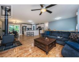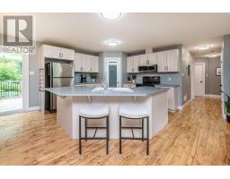 Escape the hustle and bustle of the city and enjoy the peace and privacy of country living in this beautifully maintained, custom-built raised bungalow. Set on just over half an acre and only a short drive from town, this home offers the perfect balance of rural tranquility and everyday convenience. Whether you're looking to downsize or raise a family, this home offers a functional layout and welcoming atmosphere to suit any stage of life. Step inside to an inviting open-concept layout featuring gleaming hardwood floors and abundant natural light. The spacious living and dining areas flow seamlessly into a well-appointed kitchen, complete with a large island, breakfast bar seating, and ample cupboard and counter space. The dining area walks out to a deck ideal for outdoor entertaining or simply relaxing with peaceful views of the surrounding farmland. A wood stove adds both charm and supplemental heat to the main level. The generous primary bedroom boasts a luxurious 5-piece ensuite, while two additional well-sized bedrooms and a 4-piece bathroom complete the main floor. The partially finished lower level features large above-grade windows, a 2-piece bathroom, a laundry area, and a convenient walk-up to the oversized double garage offering excellent potential for an in-law suite or separate entrance. This level also provides a fantastic rec room space, perfect for additional living, entertaining, or a home gym. The garage features 10-foot ceilings, providing ample room for larger vehicles, storage, or workshop needs. Additional highlights include a storage shed and a long driveway with plenty of parking. Located on a school bus route and close to a nearby park, this home is ideally situated for families. Whether you're looking to unwind in nature or enjoy a quiet place to call home, this thoughtfully designed property is a must-see! Excellent location just minutes to Grand Valley and only 25 minutes to Orangeville. (id:61594)