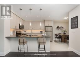 Welcome to Georgetown Terraces, one of Georgetown's most desirable condo residences where comfort, style, and natural beauty come together. This beautifully appointed 2-bedroom, 2-bathroom open concept condo offers floor-to-ceiling windows and breathtaking ravine views delivering a bright, open, and tranquil living experience. The modern kitchen features sleek cabinetry, granite countertops, a breakfast bar, and stainless steel appliances ideal for entertaining or everyday convenience. The primary bedroom includes a walk-in closet and a stylish 3-piece ensuite, while the second bedroom offers flexibility for guests, a home office, or additional living space. Step out onto your private balcony and enjoy peaceful mornings or serene evenings overlooking the ravine your own quiet escape from the bustle of daily life. Enjoy the added benefits of in-suite laundry, underground parking, a storage locker, and access to building amenities including a fitness room, party room/social lounge, outdoor courtyard with BBQ, and beautifully maintained common areas. Perfectly located just minutes to transit, parks, trails, shops, and restaurants, this condo offers the best of both nature and urban convenience. (id:61594)