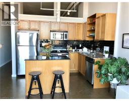 Location, Location, Location! This 1 bed + den/1 bath Penthouse Suite in the Historic Kaufman Lofts is awaiting it's new owner. Offering up contemporary living with 13 Foot ceilings, exposed pipes/duct work, polished concrete floors, an abundance of floor-to-ceiling windows and a private terrace. With an open concept design including a large kitchen with island open to a spacious living room great for entertaining guests, or a fantastic place to unwind and relax. A large bedroom, 4 piece updated bathroom and den/office/second bedroom round out the living space with the added convenience of in-suite laundry and storage closet. This unit includes 1 parking space and 1 owned locker. With incredible amenities, such as a roof-top patio and party room, and prime urban convenience, sitting right in the heart of Downtown Kitchener mere steps to the tech community (Tannery, Google, Vidyard, Atomic, Sunlife, School of Pharmacy, and countless other starts-ups), and everything it has to offer (LRT, shopping, restaurants, café’s, Victoria Park and more.) Don’t miss your chance to own this spectacular loft with incredible views, located at the historic Kaufman Lofts, and situated right in the heart of the “innovation district” of Downtown Kitchener! (id:61594)