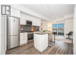 This cozy 2-bedroom 2-bathroom corner suite at Reunion Crossing Condos has an open concept kitchen + living room with natural light. The suite is maximally quiet and private. Its balcony is fully enclosed and not overlooked from any side. The windows from floor to ceiling face the north and reveal a pleasant view which will not be disturbed in future. The kitchen has enough storage cabinets for people who cook. All fixtures and fittings are from the upgraded line. Stainless steel makes the appliances easy to clean and last longer. The quartz countertops are more durable than standard ones. The subway tile backsplash will last and be easy to clean. The island counter with a breakfast bar Is multifunctional. The master bedroom has a closet with shelves, hanging rails, and a mirror. The second bedroom can serve many purposes with its closet and wall that allows light in. The suite has a stacked washer + dryer and 1 storage locker on the parking level. The building has a bicycle storage room, urban room for many purposes, parcel room, games area in the lobby, modern gym, party room, ground floor patio with a BBQ, pet station, and a rooftop terrace with a BBQ and space for gardening. All this is a fantastic deal with Bulk internet from Rogers included in the maintenance fees. The 512 St Clair streetcar stops outside from the building. TTC buses connect the building to Subway Line 2 , Bloor GO station and Eglinton LRT in about 10 minutes. The Stockyards neighborhood offers cafés, restaurants, banks, shopping streets, public library and parks. This totally private suite at Reunion Crossing Condos will be a great asset to anyone who buys it. Amenities: Modern fitness centre, Party room with kitchen/lounge, Games area, Ground-floor outdoor patio with BBQ, Rooftop terrace with BBQ + community gardening space, Dedicated bicycle storage room, Parcel delivery room, Urban multi-purpose room, Pet wash station, Secure storage lockers, Bulk Rogers high-speed internet included (id:61594)
