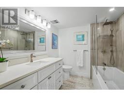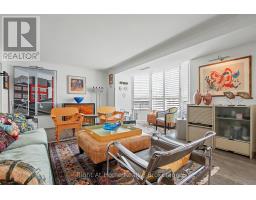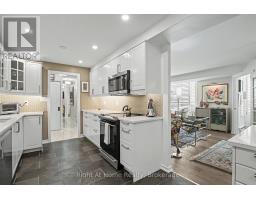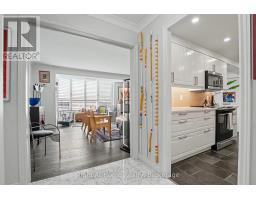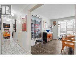 Ideally located steps from Burlington's vibrant downtown. 2121 Lakeshore Road, 'Village Gate', is an exclusive boutique condominium with just 39 units. A well-managed and meticulously maintained building offering a welcoming lobby with intercom and hands-free entry. Welcome to SUITE 405, a fully renovated 2-bedroom, 2 bathroom plus a Den. The galley style kitchen with breakfast bar is open to the dining room. Features include: white cabinetry offering abundant storage, glass display cabinets, quartz countertops, stylish backsplash, stainless steel appliances, pot lights, and slate flooring. The open-concept living, dining, and den are bright and inviting, highlighted by bay windows, California shutters, smooth ceilings and engineered hardwood flooring. Thoughtfully curated and full of character, each space flows seamlessly into the next, creating an inviting atmosphere that feels both stylish and personal. The result is a warm, gallery-like setting that celebrates creativity while maintaining comfort and functionality. The Spacious Principal Bedroom includes a bay window, engineered hardwood flooring, California shutters, and a walk-in closet, along with a private 4-piece Ensuite featuring an updated vanity and tub/shower combination. The second bedroom also features a bay window and engineered hardwood flooring. A 3-piece main bath offers a glass-enclosed shower and vanity. Laundry w/stacking washer & dryer and additional storage space. Neutral paint, Smooth Ceilings throughout, Engineered Hardwood flooring, Linen Closet, Utility Closet. 1 Parking and 1 Locker. The outdoor spaces beautifully landscaped with benches to relax and enjoy the gardens and fresh air. Steps to downtown shops, cafes waterfront, arts, Hospital, grocery, malls, GO, local transit and so much more. Welcome Home to Unit 405 - 2121 Lakeshore Road, Burlington. (id:61594)
