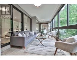 Welcome to Suite 405 at 342 Spadina Road, where luxury and comfort meet in the heart of Forest Hill South. This exquisite 2,534 sq. ft. condo including sunroom in a boutique 20-unit building has been completely reimagined, offering a modern, turnkey lifestyle for discerning buyers. As you step inside, you'll be captivated by the abundant natural light streaming through floor-to-ceiling windows. The open-concept layout showcases breathtaking views of downtown Toronto and lush treetops. European wide-plank hardwood floors, architectural ceilings with indirect lighting, & custom finishes create a sophisticated ambiance perfect for both entertaining and quiet evenings at home. The chef's kitchen is a showstopper with custom painted finish & rift-cut oak cabinetry, premium quartz counters and backsplash, and top-of-the-line Jennair appliances including a 36" induction cooktop, twin fridge/freezer columns, convection ovens, & an under counter dual temperature wine fridge. A large island, ultra-quiet Bosch dishwasher, indirect lighting & a sleek Jennair downdraft venting system add to the seamless functionality & clean sightlines. Relax in the luxurious living room featuring a stunning slab quartz feature wall, Evonik frameless electric fireplace, & floating oak shelves. The serene primary suite offers tree-top views, custom walk-in closet, spa-like ensuite featuring a Bain Ultra tub, heated floors, & premium Kohler fixtures. The sunroom/terrace provides a tranquil 240 sq. ft. retreat, perfect for morning coffee or evening cocktails. Additional highlights include a bright laundry room, two owned parking spaces, an owned locker room, & building amenities like such as a concierge, party room, gym, EV-ready charging capability & convenient above grade visitor parking. Enjoy an unbeatable location, steps from Forest Hill Village, transit and top private schools. Suite 405 is an invitation to live life beautifully in one of Toronto's most coveted neighbourhoods. (id:61594)