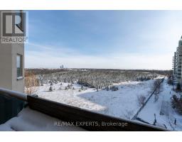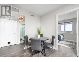 Welcome to an exceptional and stunning residence offering space, views, and lifestyle in perfect harmony! This impeccable 2+1 bedroom, 2-bathroom condominium delivers close to 1,300 sqft of thoughtfully designed living space, framed by sweeping views of the Claireville Conservation Sunlight pours through expansive windows, enhancing the sense of openness throughout the suite. The well-appointed updated wall to wall kitchen blends style and practicality, showcasing granite countertops, stainless steel appliances, generous cabinetry, and a pantry, all thoughtfully positioned to flow effortlessly into the main living spaces-perfect for both hosting and daily living. The open living and dining areas are bright and inviting, framed by expansive windows and direct access to the balcony, where serene, unobstructed ravine views offer a calming and picturesque setting.The primary suite offers a peaceful retreat, featuring a beautifully renovated four-piece ensuite, ample closet space (his and hers), and a large window with tranquil views of the surrounding greenery. The generously sized second bedroom includes an oversized closet and offers excellent versatility, while the spacious enclosed den can comfortably function as a third bedroom, home office, or guest suite. Additional highlights include in-suite full-size laundry, upgraded laminate flooring throughout, stylish roller blinds in every room, one underground parking space, and two storage lockers for added convenience. Enjoy close access to scenic nature trails,shopping, dining, parks, transit, and major highway connections all within easy reach-offering the perfect balance of tranquility and accessibility. Residents enjoy a full suite of lifestyle amenities, including a library, gym, media and activity rooms, games and billiards spaces, guest accommodations (additional cost), and an impressive event room with stage and separate kitchen-perfect for hosting larger gatherings. (id:61594)