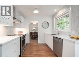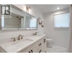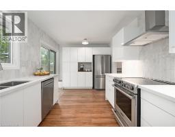 This stunning 4 level side split sits on a private pie-shaped lot on a quiet crescent in Roseland. This home has been beautifully updated/maintained throughout and features 3+1 bedrooms, 1.5 bathrooms and finished lower levels with in-law potential! The main floor boasts luxury vinyl plank flooring and plenty of natural light throughout. There is an over-sized living room, separate dining room and a beautifully updated kitchen. The kitchen features stainless steel appliances, airy white cabinetry, quartz counters, a tiled backsplash and a large patio door leading to the backyard oasis. The bedroom level has hardwood flooring throughout, 3 bedrooms and an updated 5-piece bath. The lower level has hardwood flooring, a 4th bedroom, 2-piece bathroom, large family room and a walk up to the backyard! The basement level has a sprawling rec room, laundry room and ample storage! The beautifully landscaped exterior includes a single car garage and fully fenced yard with a large wood deck, a gas BBQ line and plenty of privacy. This home sits in a quiet, family-friendly neighbourhood and is conveniently located close to schools, parks, public transportation and all amenities. (id:61594)