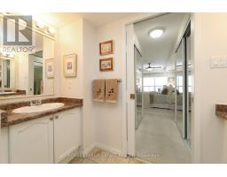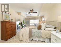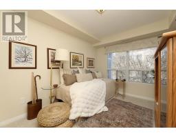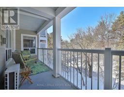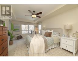 Welcome home to Reflections on Bogart Pond, a peaceful, adult-oriented community surrounded by mature trees, scenic walking trails, a tranquil pond, and river. This beautifully updated 2-bedroom, 2-bath condo offers 1,126 sqft. of thoughtfully designed move-in-ready living space with a desirable split floor plan and a large private balcony overlooking a lush forest. The updated kitchen features quartz countertops, quality cabinetry, and stainless-steel appliances, flowing seamlessly into a spacious living area and a separate dining room with plenty of room for your dining room table. The generous primary suite offers balcony access with an invisible screen, his-and-hers mirrored closets, and a large 5-piece ensuite bathroom. A second bedroom is privately positioned beside a full bath, ideal for guests, den or a home office. Residents enjoy an exceptionally welcoming community with social activities and amenities including large party room with outdoor patio, BBQs, full kitchen, library and pool table, that make it easy to connect and truly feel at home. Conveniently located near Highway 404, shopping, restaurants, and all of Newmarket's amenities, this is an outstanding downsizer opportunity offering comfort, connection, and lifestyle. (id:61594)