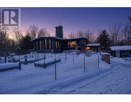 County oasis on one of the most prestigious blocks of St. Johns Sided 35 minutes to Toronto. This Architect/Engineer custom built home is truly one of a kind & was built as a personal residence. Desirable natural setting on 10 private forested acres w/ views in every direction, groomed trails & lots of outdoor activities for kids, adults & pets. Stunning interior w/ enormous open concept primary rooms, grand windowed walls, vaulted ceilings w/ Douglas Fir beamed ceilings. multiple stone fireplaces, & fabulous over sized bathrooms, doors & windows. Fr w/ natural field stone walls, sunken den, formal dr that spills out to entertainer's dream western facing deck, reno'ed kitchen & large office w/ 2 picture windows & 2 way fireplace. Primary bedroom has 6 pc ensuite, sliding doors to deck, huge closets & plank floors. This chalet lodge inspired home can be decorated & furnished to any taste w/ its unique natural stone wall accents, glass block finishes, 6 rooms w/ fireplaces, fabulous media/games room, main floor in-law/nanny suite w/ ensuite & artist drawn mural, & a music room (or 5th bedroom/nanny suite w/ ensuite) in lower level. Multiple upgrades t-out & too many features to list.2 Geothermal furnaces 2021, exterior painted 2021, New windows, Renovated Kitchen & paved driveway 2022. Burma teak Hardwood and plank floors, over-sized doors and baths, vaulted Douglas Fir beamed ceilings, natural stone & exposed brick walls, man cave garage, groomed forest trails, enclosed organic Hugel Culture vegetable garden. (id:61594)