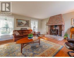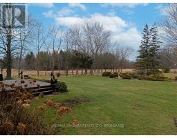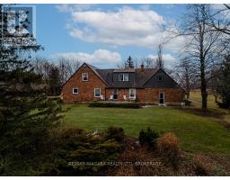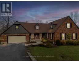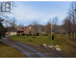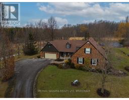 Set back from the road on a curved, tree-lined driveway, this custom built, one-owner brick home offers privacy, space, and a true country setting on 11.9 beautifully treed and landscaped acres. Offering 2,200 sq. ft., this 4 bedroom, 2 bath home is surrounded mature trees, lawn, manicured perennial gardens and a large pond. An interlock walkway leads to the covered front porch and the main entrance to this well maintained home. A large foyer welcomes you to the main floor living room and family room. The family room is anchored by a full brick, floor-to-ceiling fireplace with a wood-burning stove insert and wide hearth, creating a warm and inviting focal point. The kitchen features wood cabinetry, classic subway tile backsplash, ample counter and storage space, and a large bay window with views across the property, along with room for a breakfast table. A main floor laundry room provides convenient access to the backyard deck. A generous bedroom with double closet and a four-piece bathroom completes the main floor. A grand staircase leads to the second level and 3 additional bedrooms, including one with a walk-in closet and ensuite privilege with the full bathroom featuring a skylight over the tub. Dormer windows add character and natural light throughout. The full basement is bright and offers excellent potential for future finishing. Many recent updates including flooring, siding, fascia & soffits. Out back, the 50' x 50' workshop is a standout feature, complete with hydro and water supply-ideal for hobbyists, trades, or serious storage needs. The rural setting is balanced by a central location, making commuting to both south and north Niagara, as well as Haldimand & Hamilton, straightforward and convenient. A rare combination of land, privacy, and a well-cared-for home, all in one exceptional package. (id:61594)
