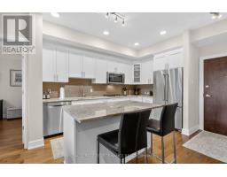 Beyond well kept, immaculate 2 bedroom, 2 full bathroom penthouse apartment with unobstructed east view overlooking Ken Ross Park from the balcony and bedrooms. This apartment offers nine foot ceilings and has been totally upgraded with quiality finishings throughout. Upgraded kitchen and bathroom cabinets, custom ensuite double shower. All wood flooring and doors have been upgraded. Ceramic floor in both bathrooms. Higher quality stainless steel applinances, granite counter top, built in oven, and gas cook top elements. Built in microwave oven. Custom window coverings along with upgraded light fixtures throughout. The spacious balcony off of the living room features a custom power balcony sunshine screen, with durable flooring. A gas hook up BBQ is also included. Bright, open concept layout features a breakfast bar sitting area, custom kitchen with granite counter tops with lots of counter space and twelve storage drawers, complete with glass ceramic backsplash. Large dining room is where the laundry and utility closets are located. The spacious, bright living room includes the wall mounted electric fireplace and TV. Large sliding door access the balcony east views of the park. From the hallway, access the second full bathroom and spacious bedroom/office offering a large double closet, includes the TV, and offers a secondary access to the balcony. The large primary bedroom offer a spacious walk through closet to the full ensuite bathroom with custom double shower stall. The apartment incluses one, underground indoor parking spot, plus an outdoor surface parking spot. A storage locker is includes in the basement parking area accessed off of the elevator area. You will not be disappointed with this upgraded top floor apartment with the many custom features. $75K of upgrades. Within a 10 minute drive you have access to all the Barrhaven shopping/professional services amenities, restaurants etc. Walk to parks and transit. This is a one of a kind unique apt. (id:61594)