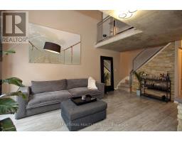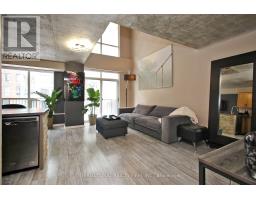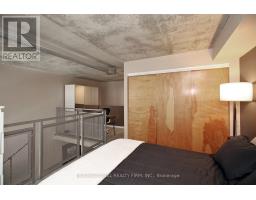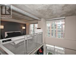 Live in this standout two-storey loft at The Kings Lofts, right in the heart of King West. This highly sought-after 1-bedroom + den features the coveted "08" layout, offering an extended floor plan and true loft living that you won't find anywhere else. Soaring 17-foot ceilings and floor-to-ceiling south-facing windows flood the space with natural light, showcasing exposed concrete ceilings, a custom stone feature wall, and bold industrial details-including steel ductwork, a red fire bell, and a stainless-steel hanging chef's pot rack. The oversized private balcony-the largest in the building-offers a tree-lined view and is perfect for morning coffee, evening drinks, or hosting friends for a barbecue.Thoughtful upgrades include custom-stained oak stairs with steel trim, a cleverly designed under-stair storage, and a Nest smart thermostat. Located on the highly desirable 4th floor, this pet-friendly building allows BBQs and features all-inclusive maintenance fees covering utilities. Enjoy premium amenities such as overnight security, a modern gym, and guest parking-just steps from King West's best restaurants, cafés, bars, shops, parks, and transit. A rare opportunity to own an authentic loft in one of Toronto's most vibrant neighbourhoods. With parking and locker. (id:61594)