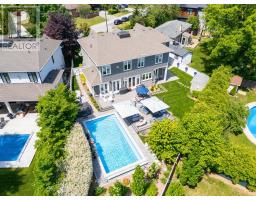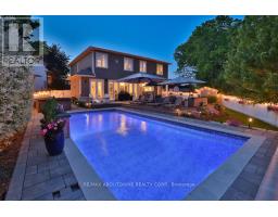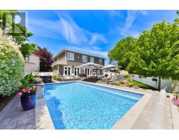 Every so often, a home comes along that sets a new benchmark. This custom-built residence combines timeless architecture, magazine-worthy interiors, and a resort-style backyard with over 6,100 sq. ft. of finished living space. Set on one of the largest pie-shaped lots in the neighbourhood (over 45% larger than average) and just 3km to Appleby College, it offers a rare sense of scale and privacy. Southwest-facing gardens showcase a heated saltwater pool, tiered lounging areas, ambient lighting, and mature hedging. Inside, 10 ceilings, wide-plank hardwood, and bespoke millwork create quiet sophistication. The open-concept kitchen and family room with gas fireplace and French doors connect seamlessly to the gardens. A formal living room, elegant dining area, and private office complete the main floor. Upstairs, the primary suite rivals a luxury hotel with spa-inspired ensuite and dressing room, complemented by 3 bedrooms and laundry. The finished lower level adds a rec room with wet bar, gym, sauna, bedroom, and bathroom, ideal for teens, guests, or multigenerational families. (id:61594)