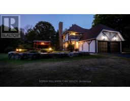 Exquisite English Tudor Estate 3.785 Acres of Panoramic Beauty in Rural Tay Township. Custom-built architectural gem on a private cul-de-sac, surrounded by nature. Offering a sense of seclusion & grandeur that is truly a one-of-a-kind. Designed for comfort & elegance, the home features dual-zone propane forced-air furnaces, upgraded insulation, & near floor-to-ceiling windows that frame year-round views of the park like setting.Gourmet kitchen is a chefs dream with granite counters, JennAir built-in double ovens, JennAir stovetop island, stainless appliances & a spacious 2nd large island connecting seamlessly to the dining & sitting rooms. Luxury double doors lead to an expansive terrace with 2 bbq hookups & a custom 15' x 21' pavilion overlooking manicured grounds.The back property, an incredible blank canvas for your ultimate outdoor oasis. Whether you dream of a pool, cabana, outdoor kitchen, or another entertainment feature, bring your vision to life here.Inviting living room offers a stone propane fireplace & walkout to both the breezeway & terrace. The elegant spiral staircase leads to 4 upper level bedrooms, incl the primary suite with walk-in closet, spa inspired ensuite with oversized jet soaker tub, heated floor & Juliet balcony. The main floor offers a versatile 5th bedroom, originally used as an office, plus a well-appointed laundry room with abundant storage.Finished lower level features a theatre room, exercise space & display of art with endless possibilities to customize to your needs. Highlights incl. a heated dble garage & a location where the school bus drives along the st.Enjoy an easy commute via nearby Hwy 400 & a central location 30 min to Barrie & Orillia & 15 min to Midland. Go snowmobiling from your front door. An exceptional blend of timeless craftsmanship, modern luxury, ideal for the discerning buyer seeking both sophistication & a perfect setting to raise a family & entertaining guests. Don't miss out! (id:61594)