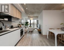 Designed to feel good the moment you walk in. Concrete accents, great light, and an effortless flow set the tone for modern west-end living done right. Clean lines, hardwood underfoot, and wall-to-wall windows create an immediate sense of openness, while exposed concrete ceilings add a cool, loft-inspired edge. The kitchen blends style and function with quartz counters, integrated appliances, a gas cooktop, modern lighting, and black hardware accents. The open living space flows to a private balcony, perfect for morning coffee or late-night chats. A tucked-away den offers flexible bonus space. The bedroom features expansive windows, custom blinds, and a wall-to-wall closet. The bathroom features a walk-in glass shower and bold black accents. Located in Junction Point, a design-forward building recognized as the BiLD 2021 Project of the Year. Maintenance fees include insurance, common area maintenance, and Rogers Xfinity Internet (1.5 Gigabit Unlimited). Steps to cafés, shops, parks, and transit, including TTC, UP Express, and GO. (id:61594)