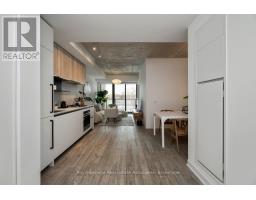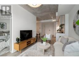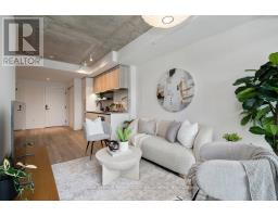Designed to feel good the moment you walk in. Concrete accents, great light, and an effortless flow set the tone for modern west-end living done right. Clean lines, hardwood underfoot, and wall-to-wall windows create an immediate sense of openness, while exposed concrete ceilings add a cool, loft-inspired edge. The kitchen blends style and function with quartz counters, integrated appliances, a gas cooktop, modern lighting, and black hardware accents. The open living space flows to a private balcony, perfect for morning coffee or late-night chats. A tucked-away den offers flexible bonus space. The bedroom features expansive windows, custom blinds, and a wall-to-wall closet. The bathroom features a walk-in glass shower and bold black accents. Located in Junction Point, a design-forward building recognized as the BiLD 2021 Project of the Year. Maintenance fees include insurance, common area maintenance, and Rogers Xfinity Internet (1.5 Gigabit Unlimited). Steps to cafés, shops, parks, and transit, including TTC, UP Express, and GO. (id:61594)
